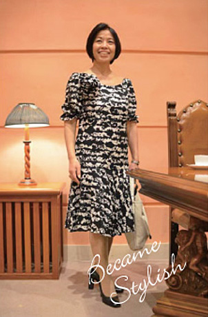 衿元のデザインでずいぶん印象が変わるものですね。ウエスト周りも大きくしてもらったんですけど、実はあれから、痩せたんですよ。このワンピースを着ていた当時を思い返したら、もうちょっと頑張ろうかなっと思って。これが本当の断捨離!?ですね!