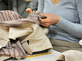お預かりした洋服をお客様のご要望に合わせ、丁寧に作業を行っていきます。修理内容によっては、直営工場へ依頼することもあります。技術指導もあるので、働きならがスキルアップすることができます。